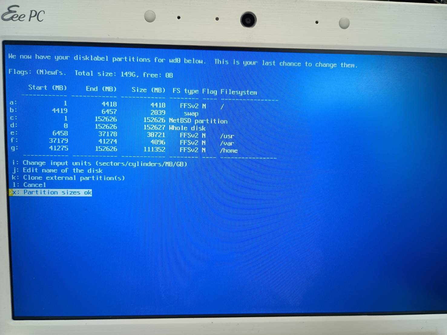 Installing NetBSD on an old laptop (Asus EeePC 1001px)